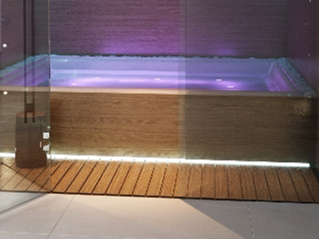 Безопасная подводная LED-подсветка 12В создает мягкое рассеянное освещение, способствующее глубокой релаксации и визуальному комфорту во время сеансов сенсорной депривации.